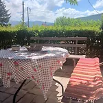 Το κατάλυμα διαθέτει βεράντα που βλέπει σε βουνό.